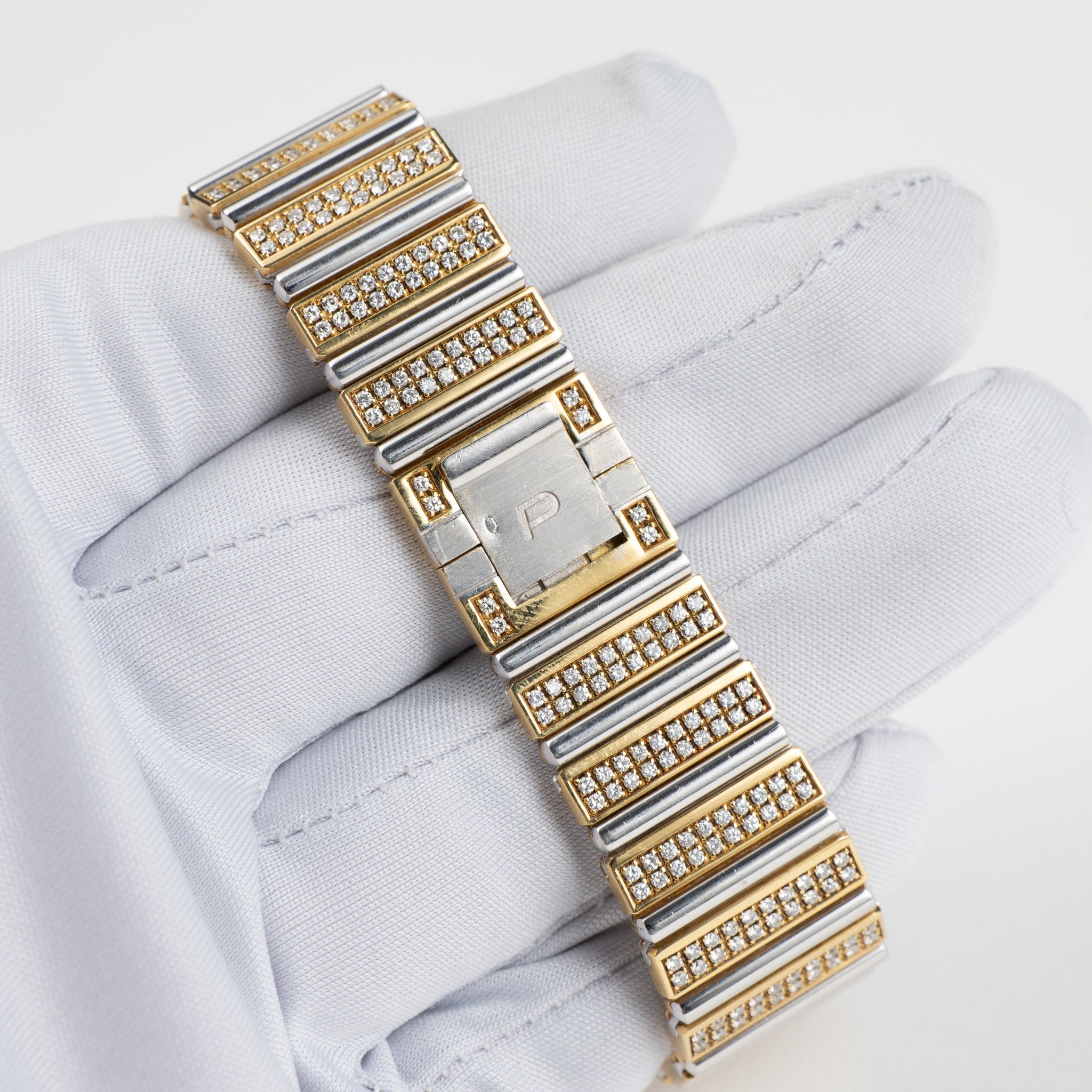 The Piaget Polo 813C725 condenses luxury and elegance into a 20 mm yellow-gold and white-gold case, set with diamonds — a refined and discreet statement wristwear ideal for lovers of miniature elegance. The compact size and gold surfaces give it subtle presence and timeless charm, while the diamond detailing elevates the overall package into high-jewelry territory.