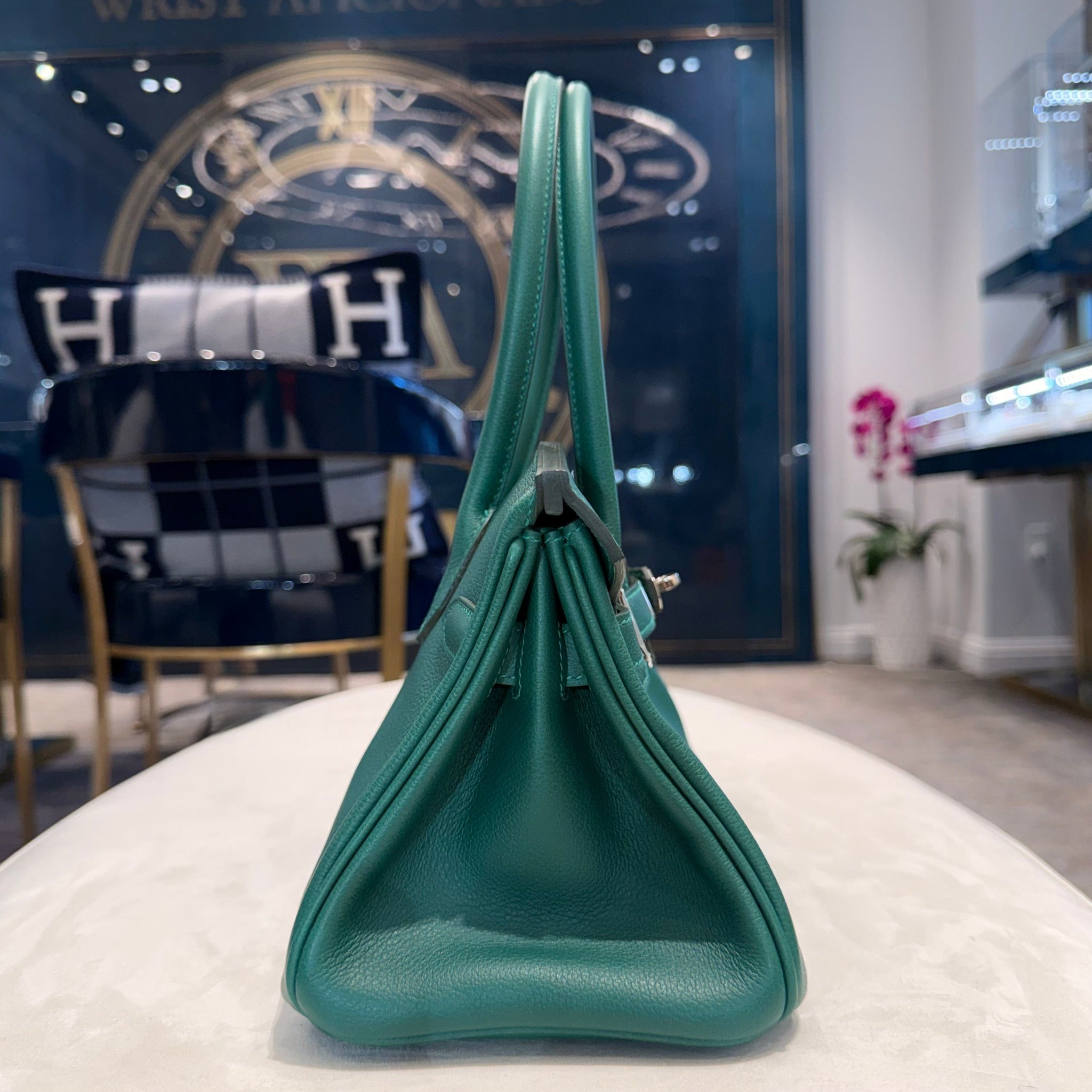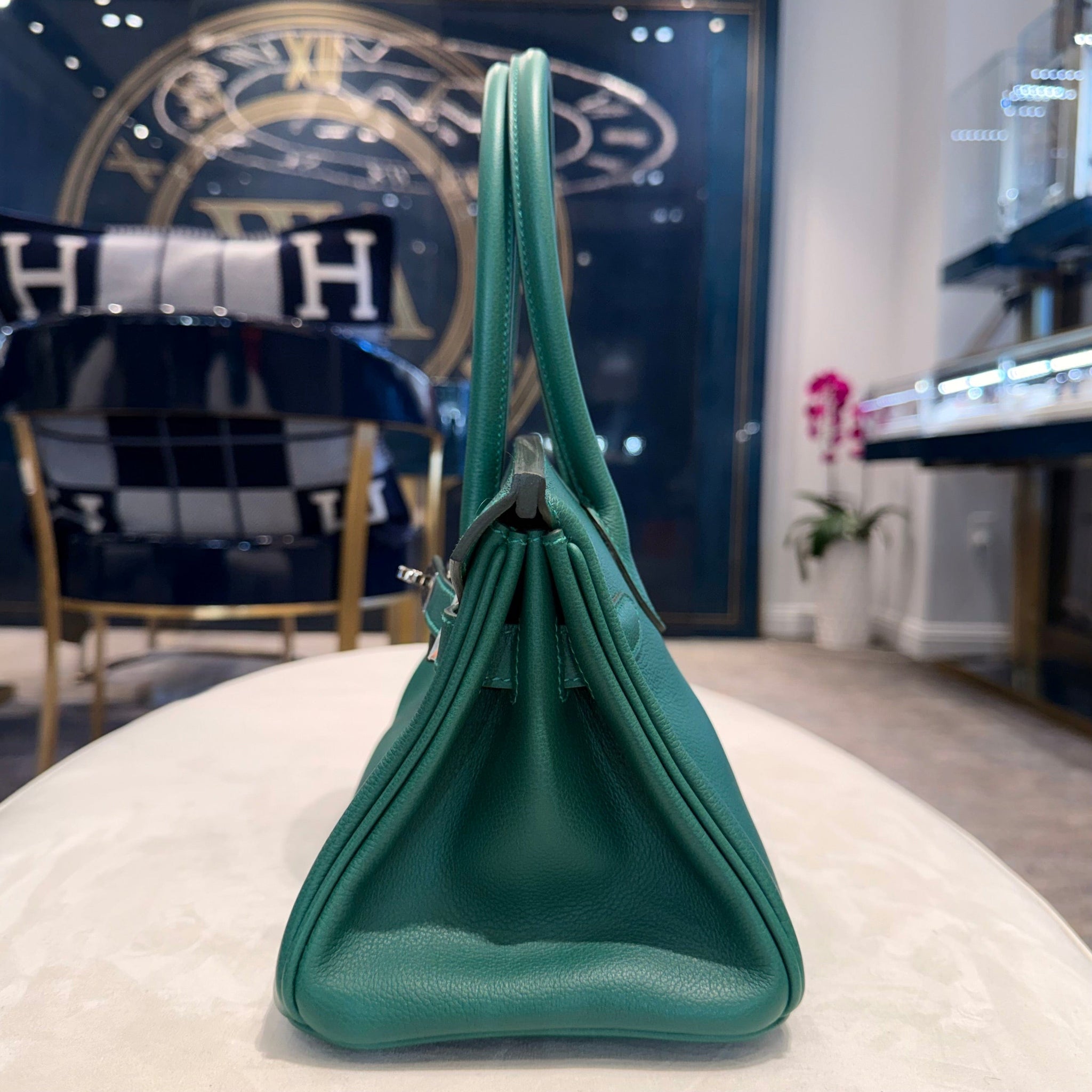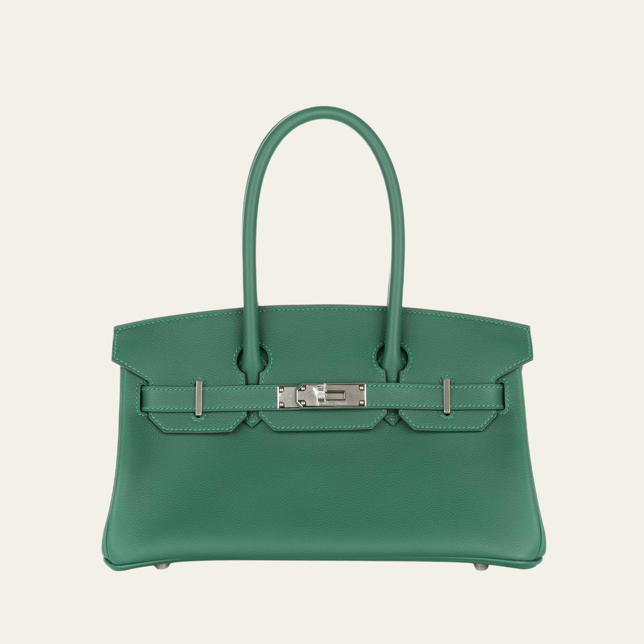 Finished with palladium hardware (PHW), this green Shoulder Birkin 29 balances its vibrant hue with sleek, cool-toned metal accents. The Shoulder Birkin Light design includes a longer strap and eased construction, making it exceptionally comfortable for daily use while maintaining the unmistakable Birkin aesthetic. The 29 size is particularly coveted for its practicality—spacious enough for essentials yet streamlined for modern, on-the-go styling.