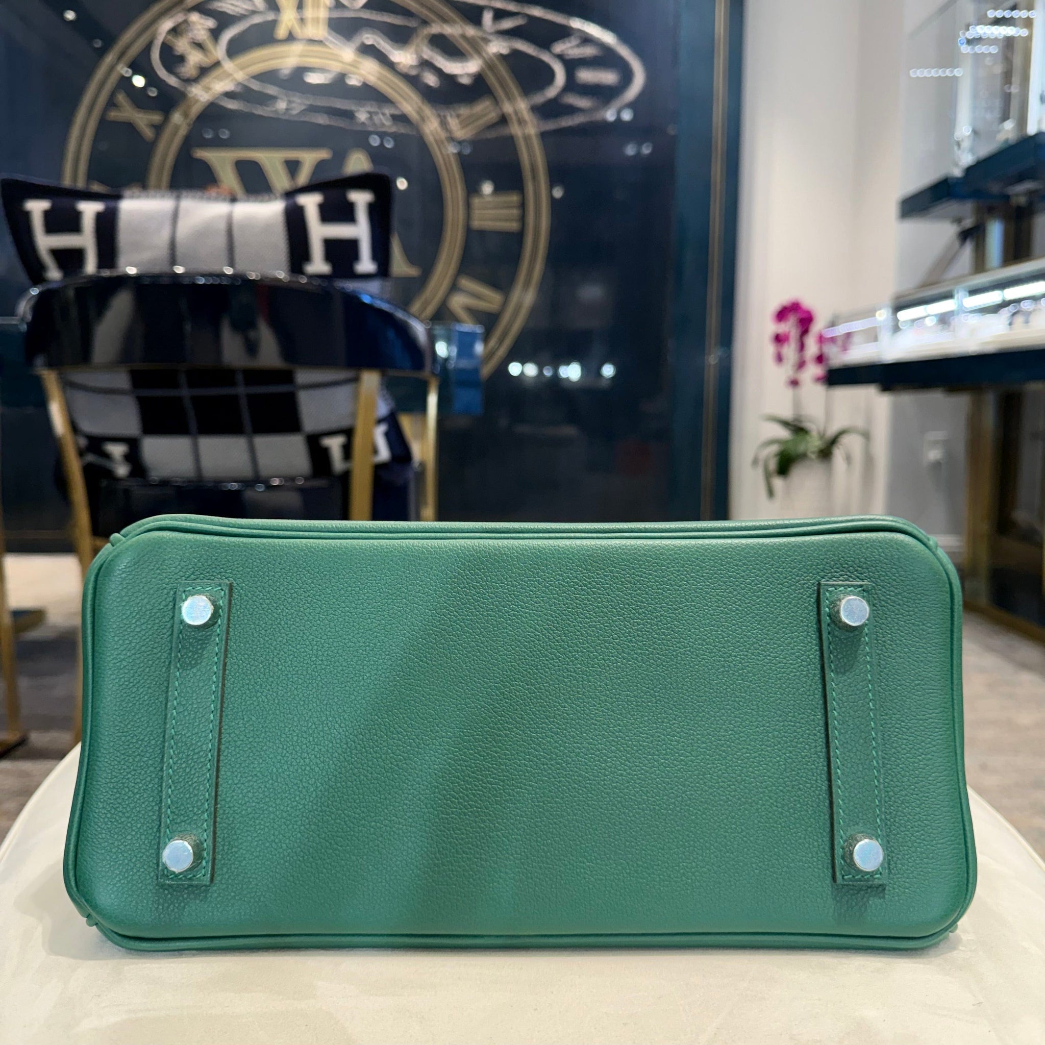 Hermès Vert Moyen Shoulder Birkin Light 29 Evercolor Palladium Hardware