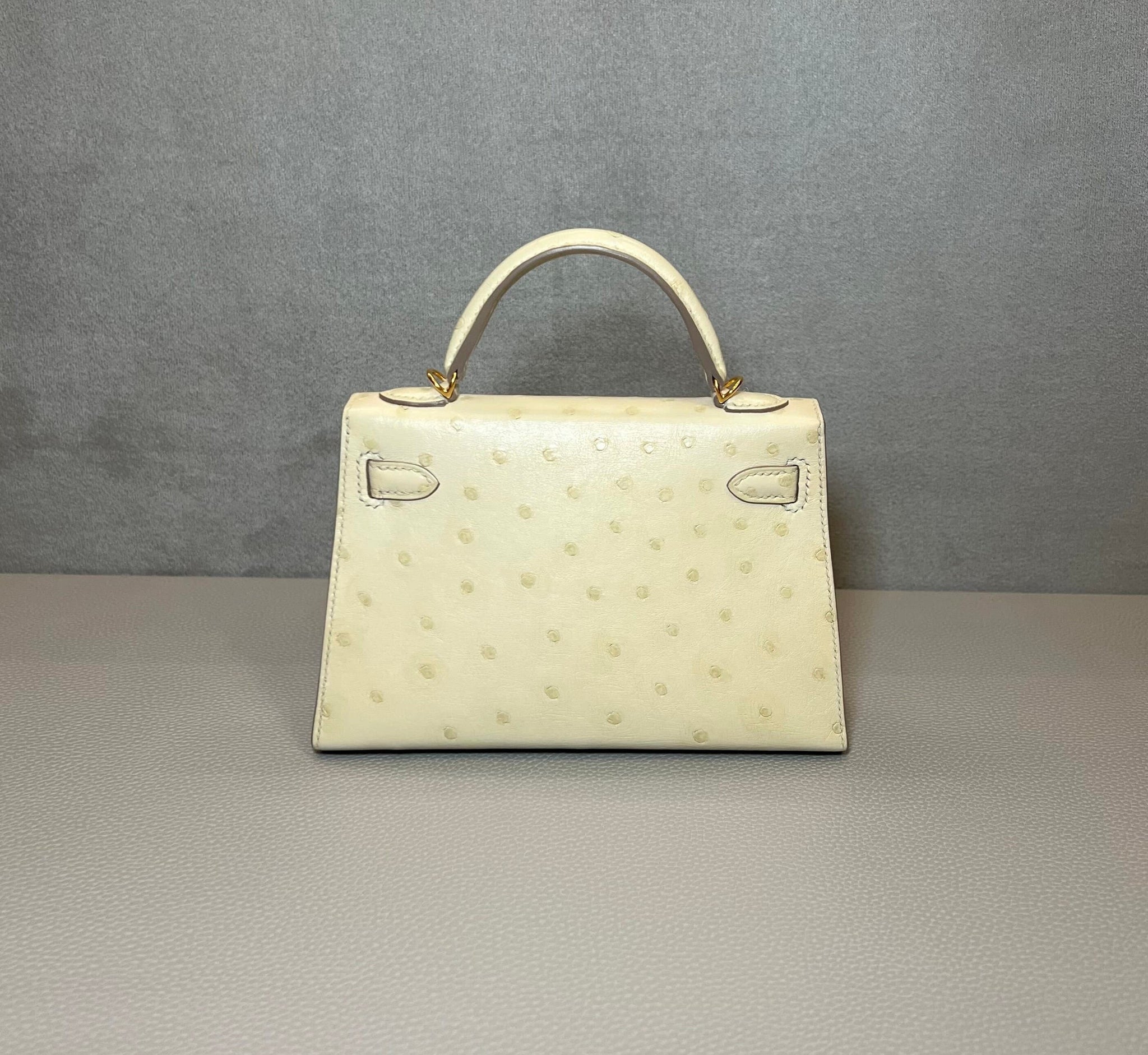 Hermès Beton / Craie Mini Kelly Sellier 20 Ostrich Gold Hardware