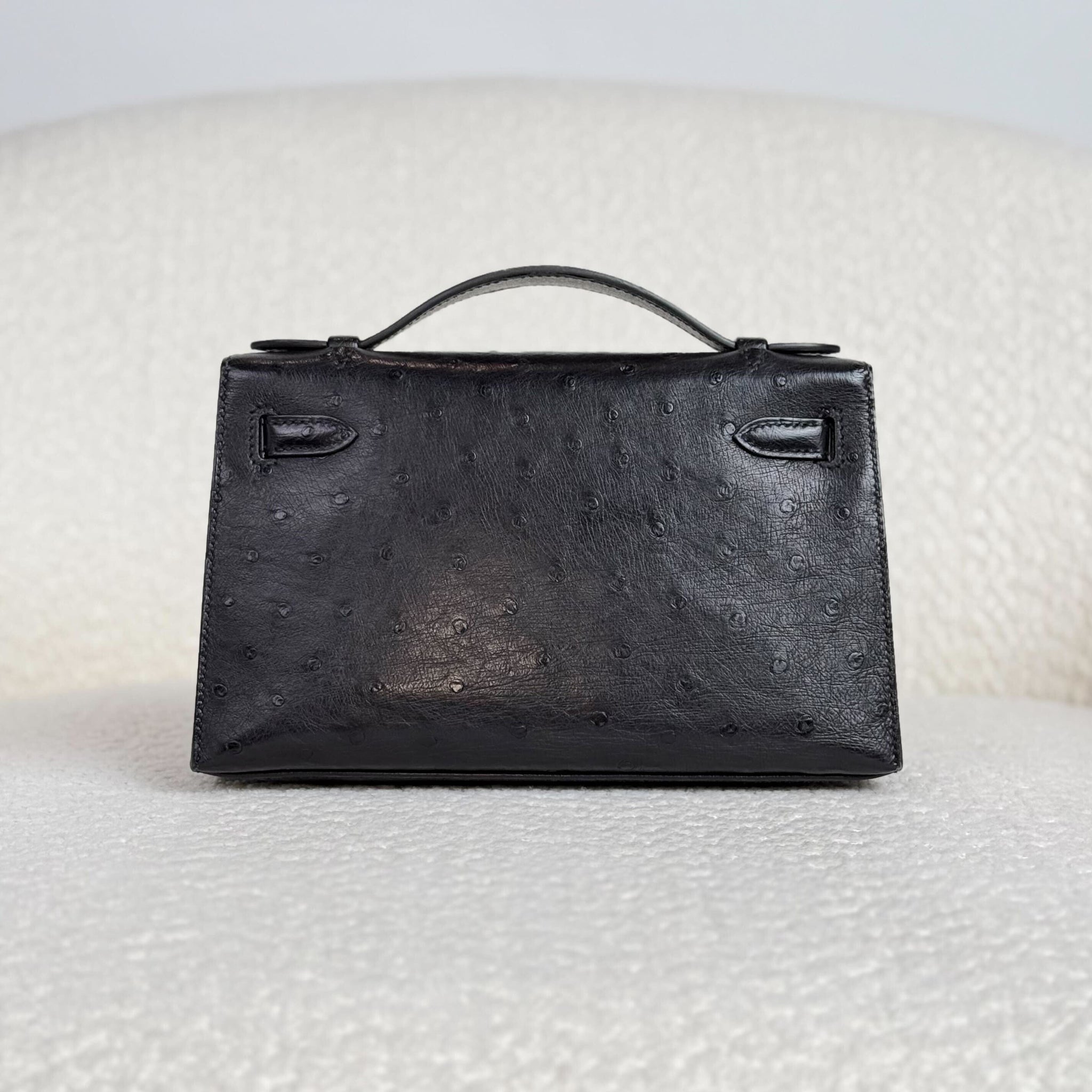 Hermès Noir Kelly Pochette Ostrich Palladium Hardware