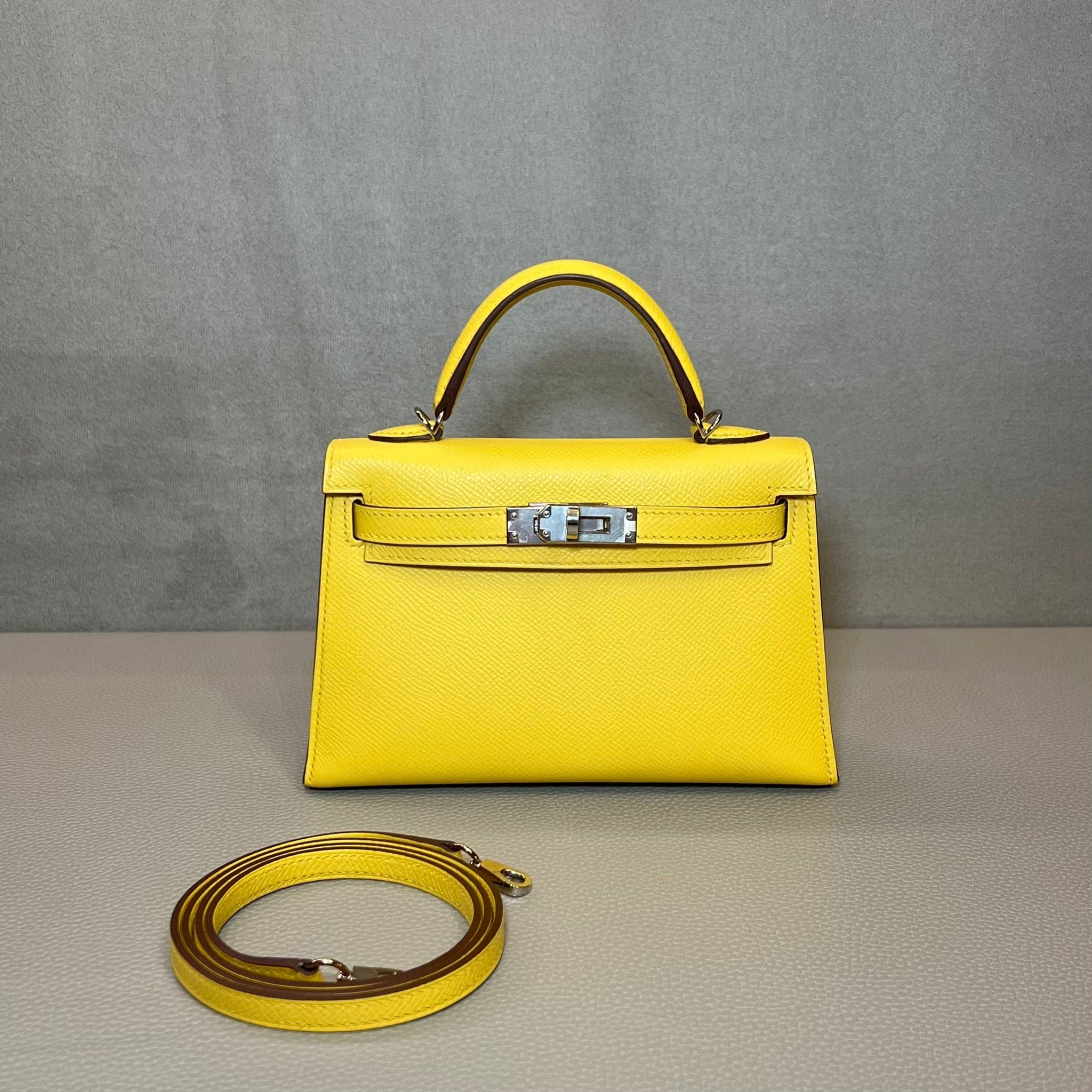Hermès Jaune de Naples Mini Kelly 20 Sellier Mini Epsom Palladium Hardware