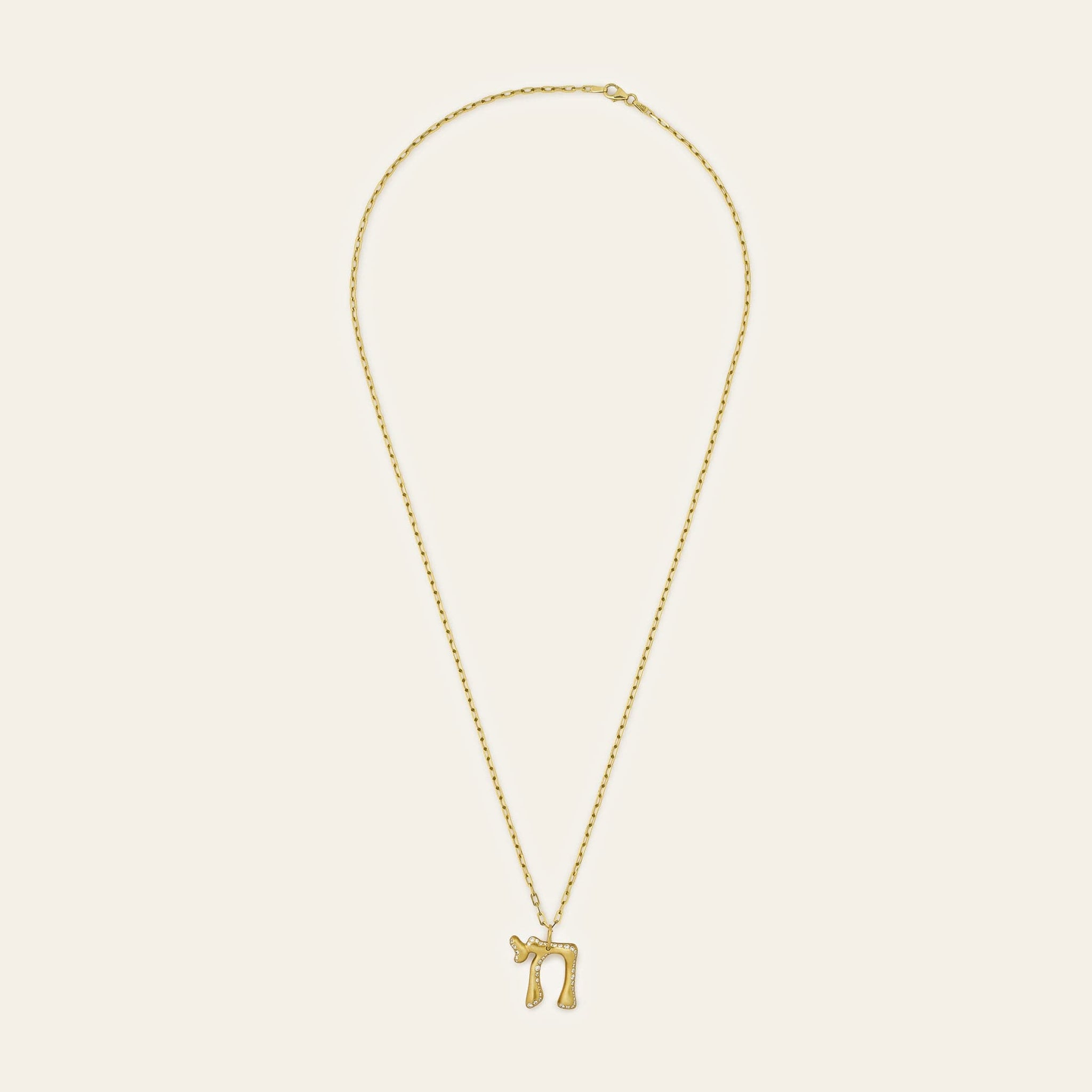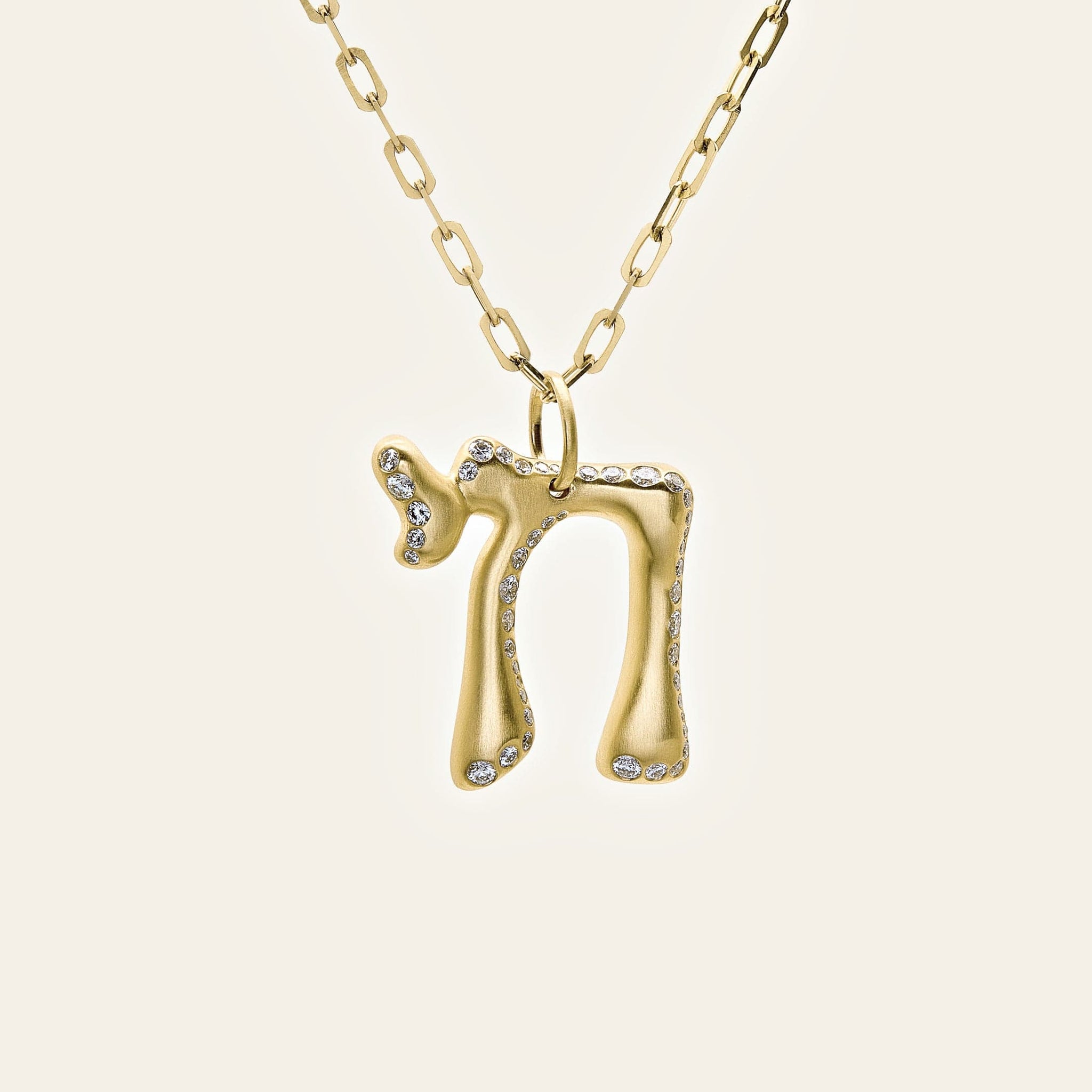 This sculptural yellow gold Chai pendant reinterprets a meaningful symbol with refined simplicity. Designed in a fluid, elevated silhouette, it feels both modern and classic. Crafted from 14K solid gold and diamonds, it has a luxurious weight and a high-polish finish that catches the light beautifully. Wear it solo as a quiet statement or layer it with your favorite chains for an effortlessly considered look.