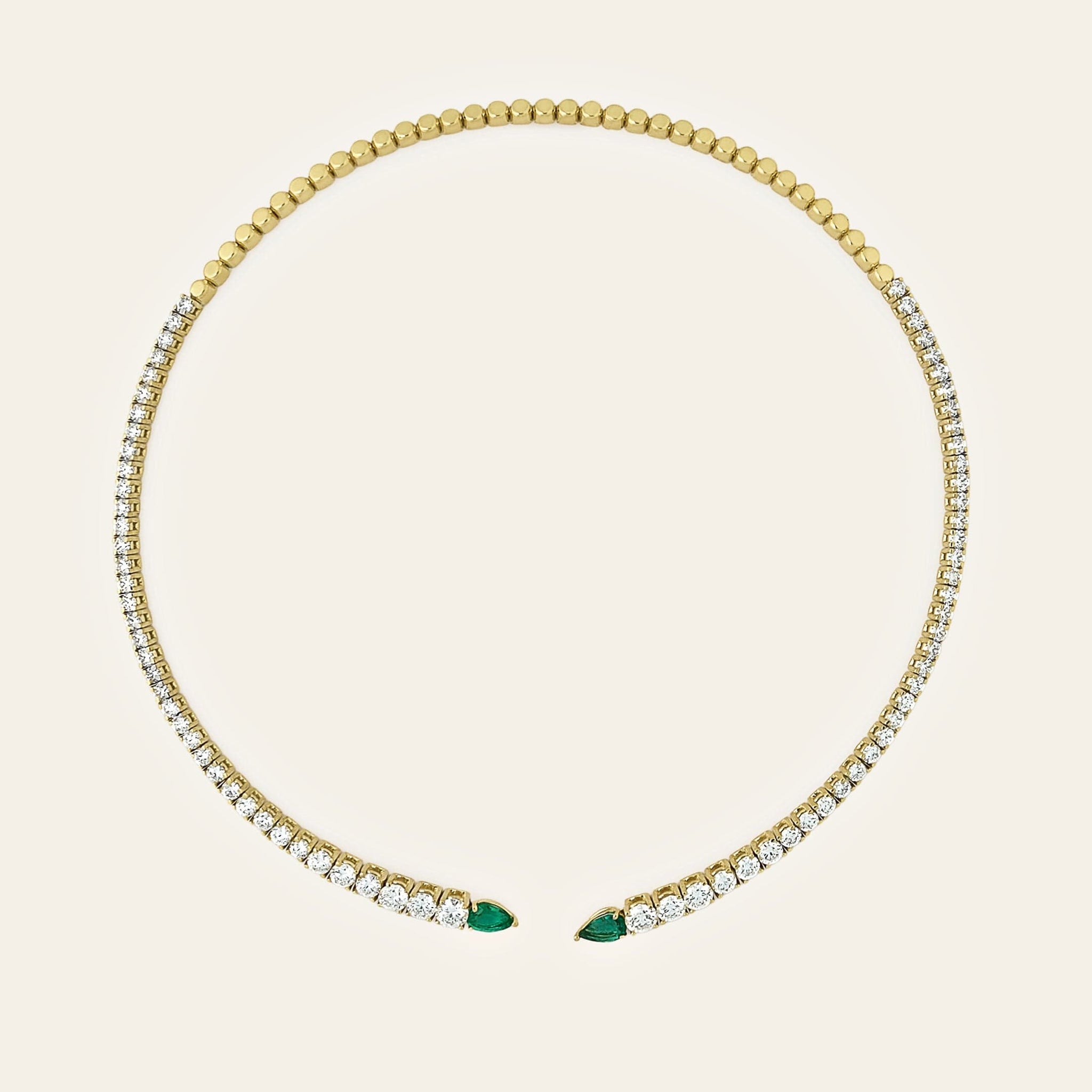 Emerald and Diamond Open Choker Necklace in Yellow Gold