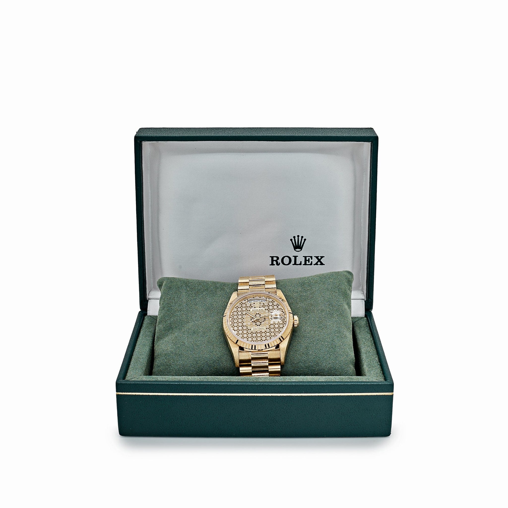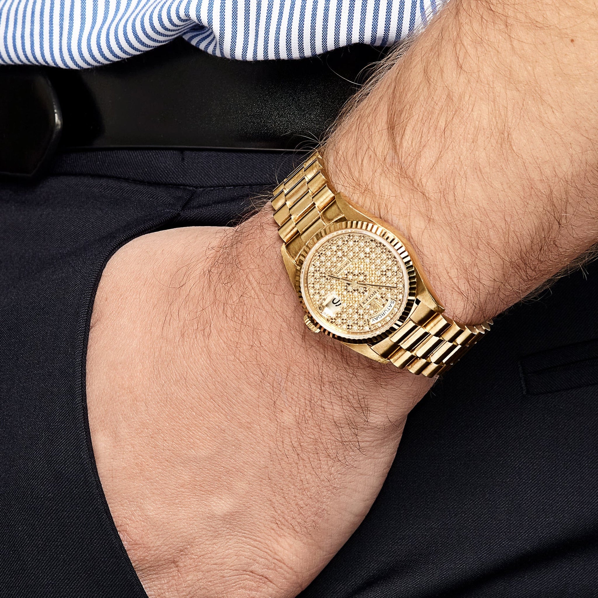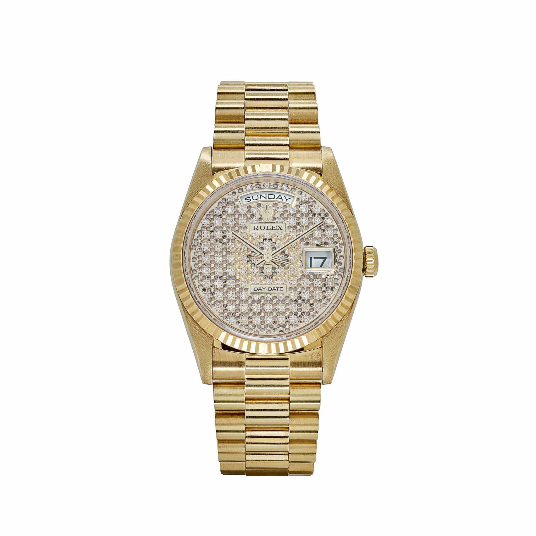 Rolex Day-Date 18238 Yellow Gold Skeleton Pavè Diamond Dial