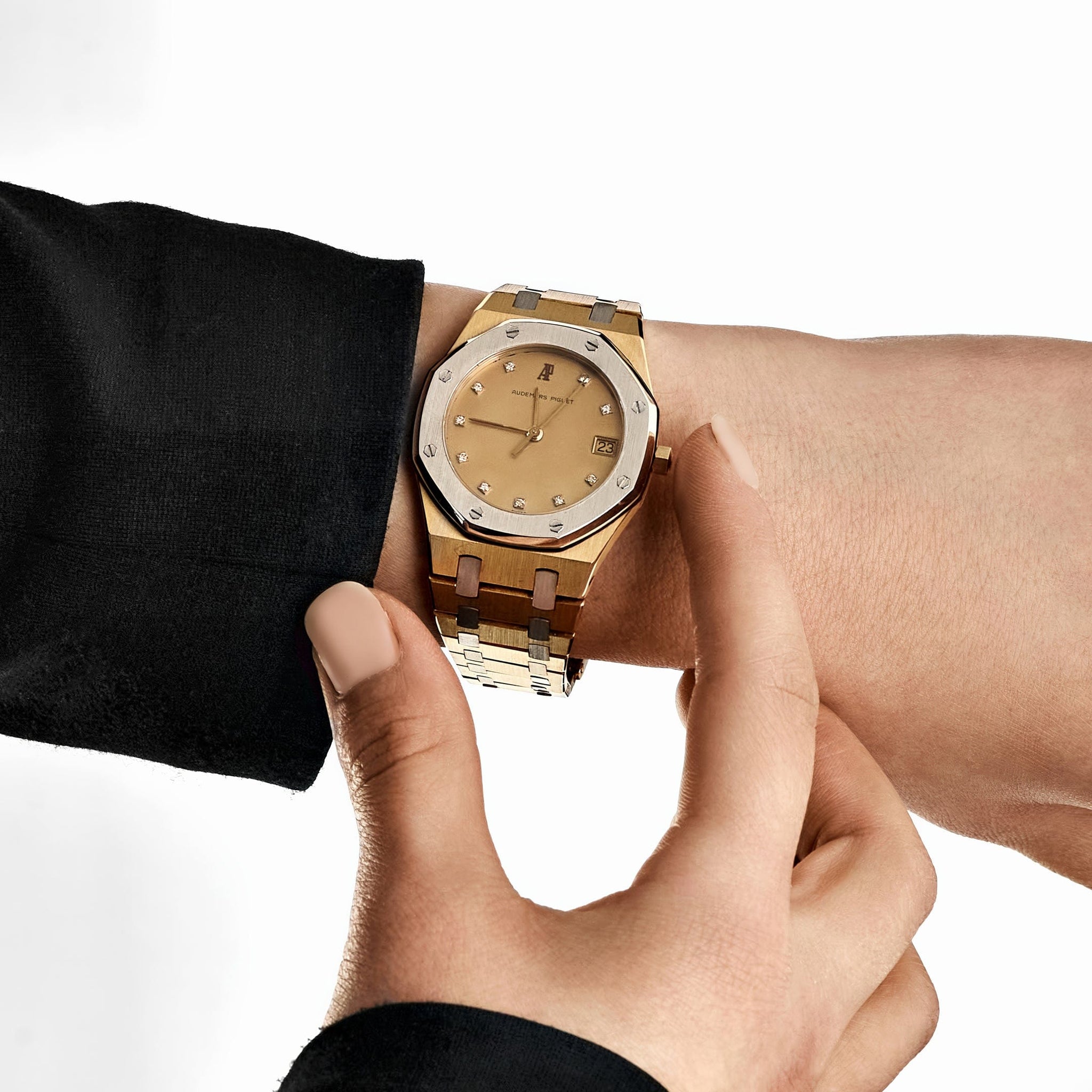 Powered by a reliable quartz movement, the Royal Oak 6023AC delivers accurate timekeeping while maintaining the slim, refined profile that makes it perfect for both casual and formal occasions. The integrated yellow gold and white gold bracelet seamlessly continues the bold geometric aesthetic, making this timepiece a true statement piece. For collectors who appreciate the history and artistry of the Royal Oak, the 6023AC is a rare and cherished example of Audemars Piguet’s enduring craftsmanship.