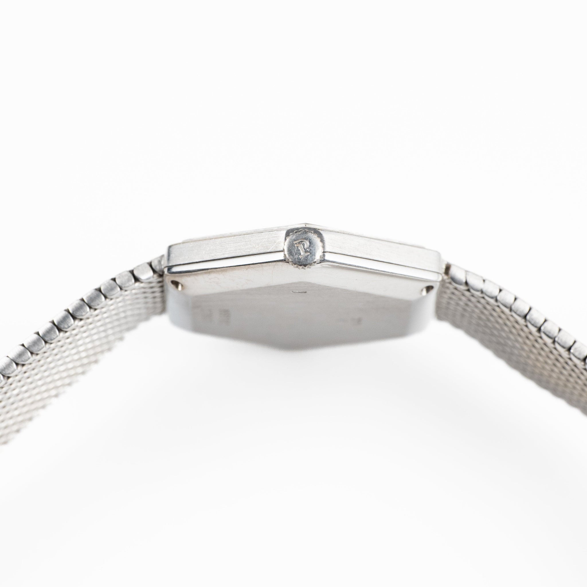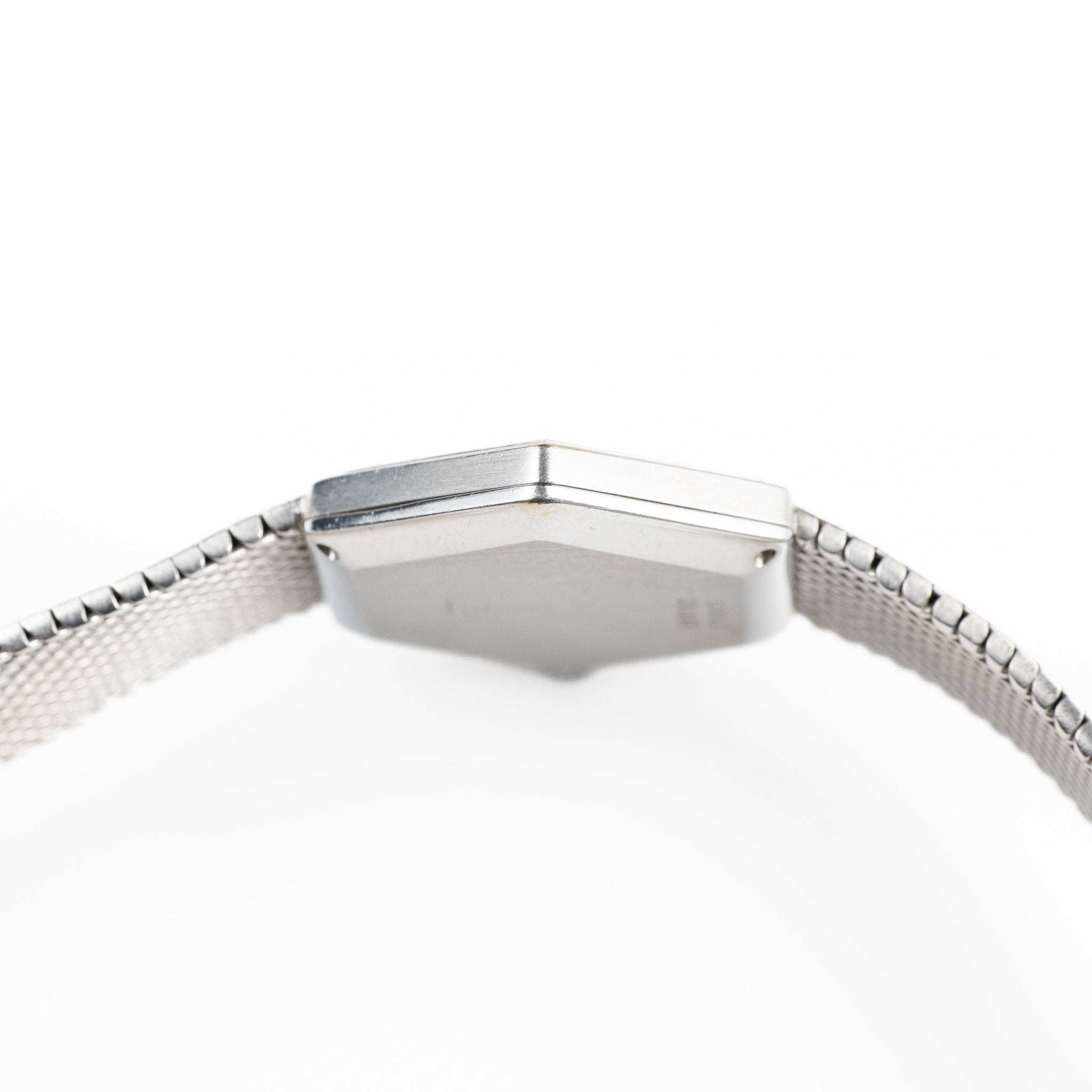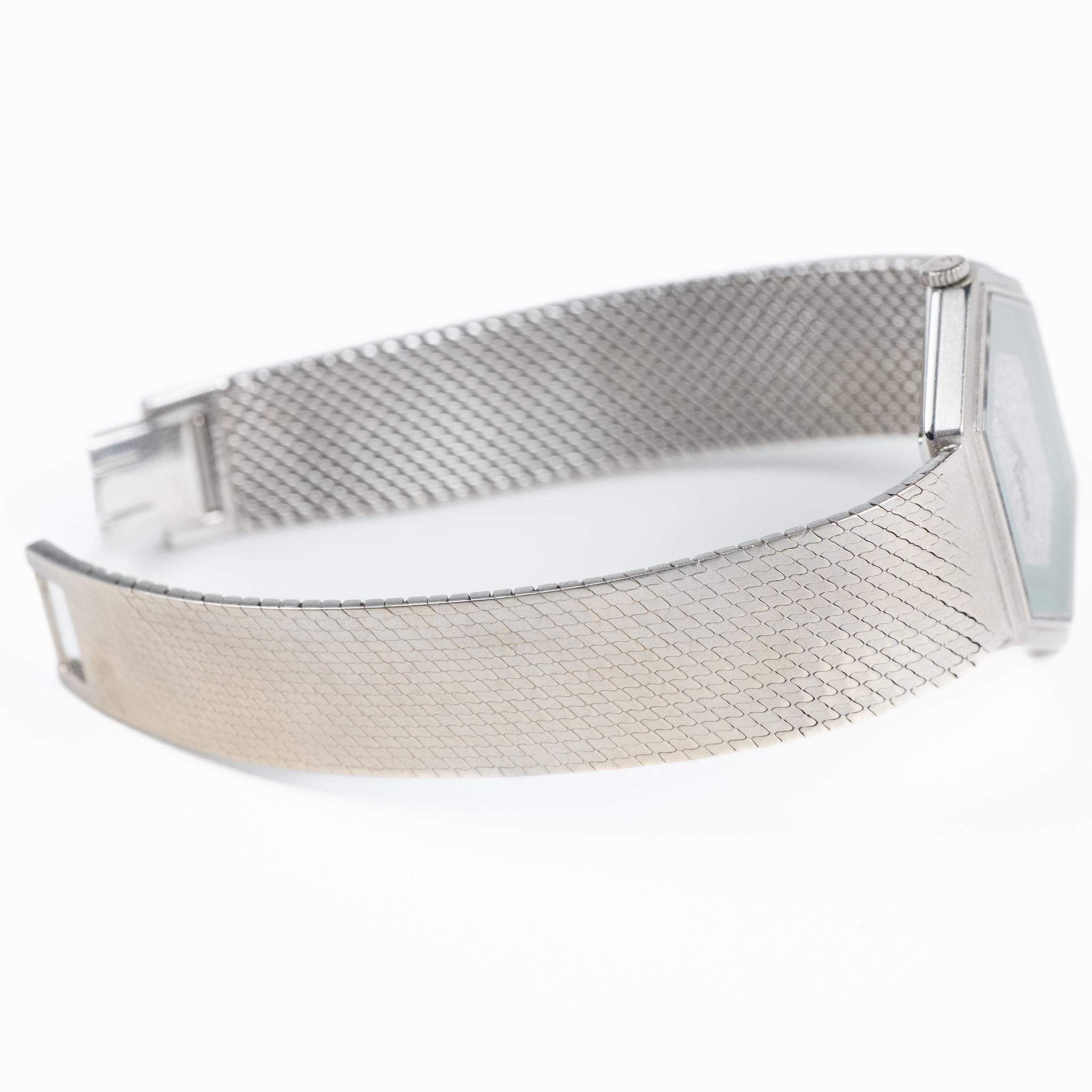 Paired with a white-gold mesh bracelet that flows seamlessly from the case, the 9557B2 carries a refined, jewelry-watch sensibility. Its manual-winding movement is housed within a slim profile, letting the piece remain elegant and wearable despite its decorative dial. With its combination of precious materials, bold dial aesthetic, and distinctive form, this Piaget reference offers a wearable form of wearable art — ideal for those who value subtle yet expressive luxury on the wrist.