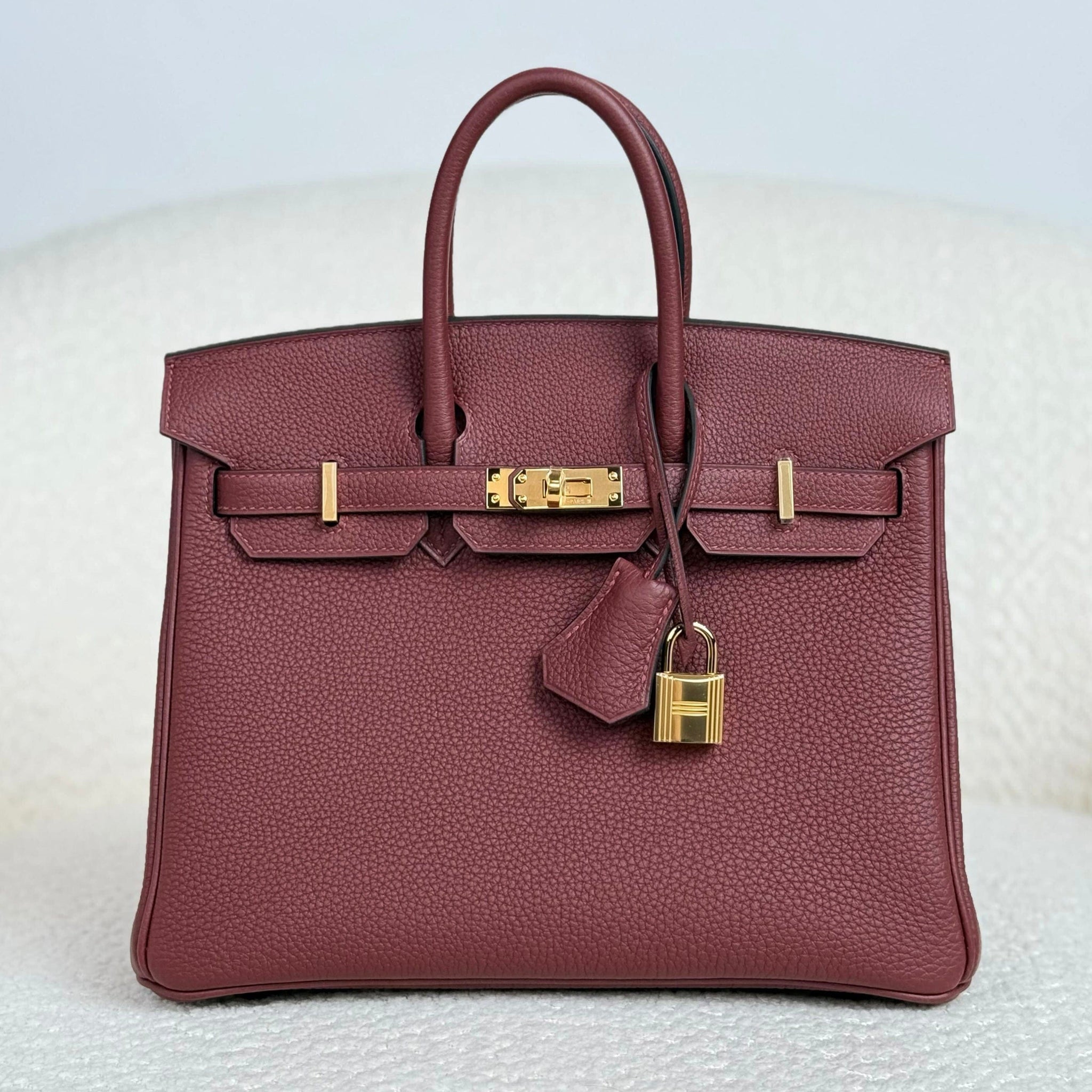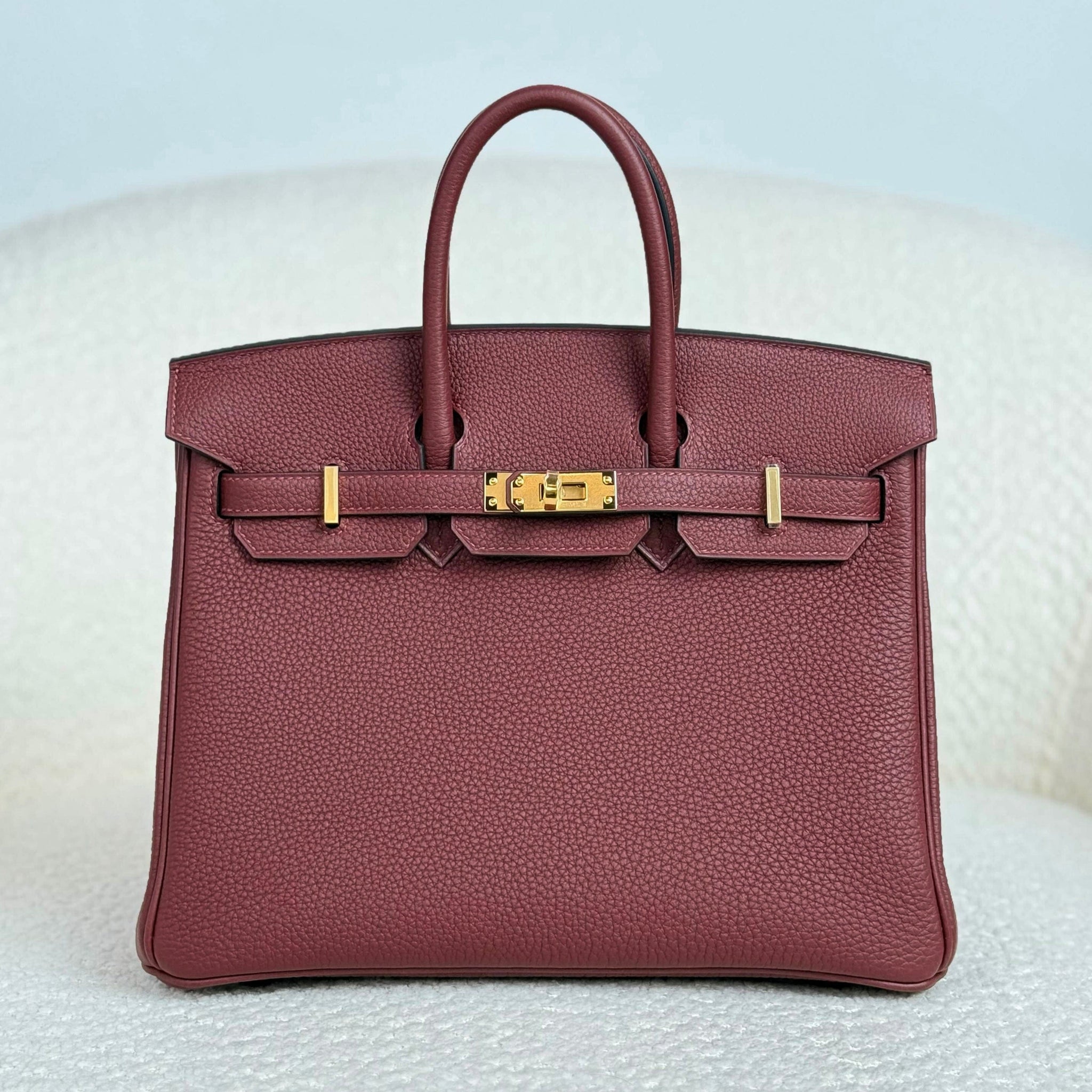 Finished with Gold hardware (GHW), this Rouge H Birkin 25 exudes timeless elegance, blending rich color with classic Hermès craftsmanship. Its compact yet functional size makes it perfect for both everyday wear and special occasions.