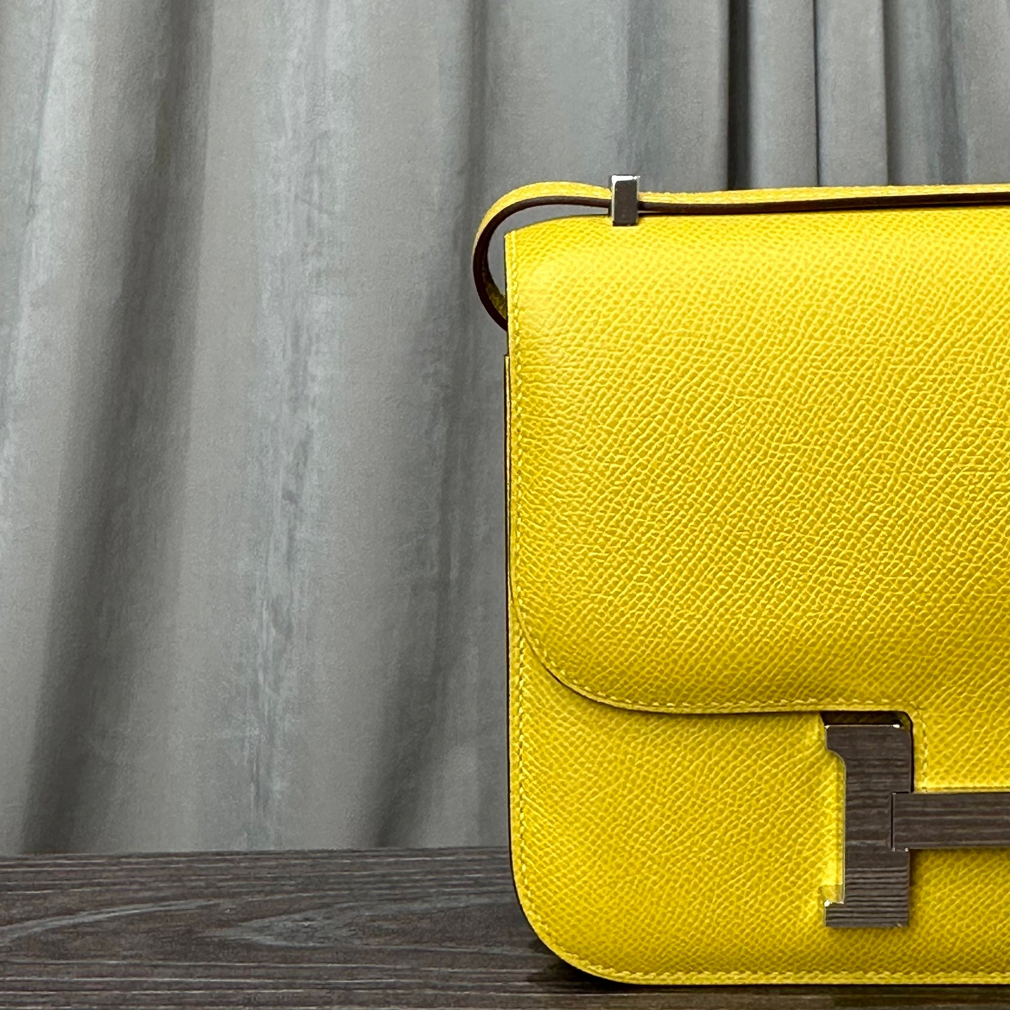 This Hermès Constance 18 in Cumin Epsom leather is a sophisticated and timeless piece. The Cumin hue is a rich, warm shade of brown with golden undertones, adding depth and elegance to the bag’s sleek silhouette. Crafted from Epsom leather, this Constance 18 offers a structured and durable finish, ensuring it maintains its pristine shape over time.