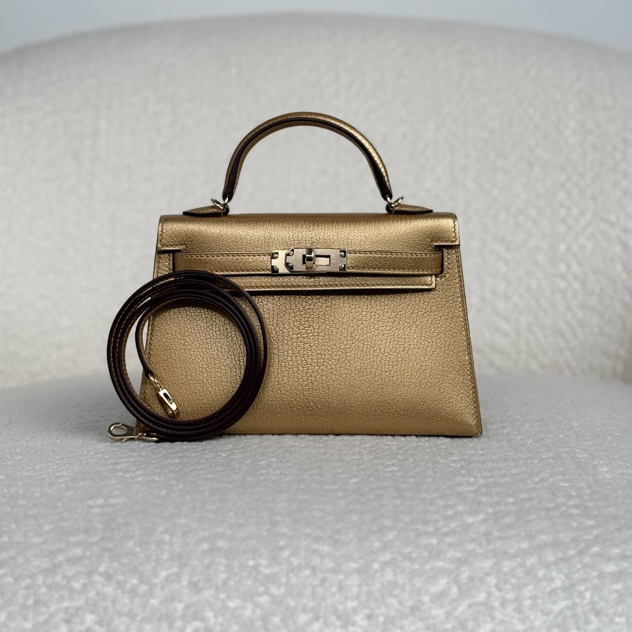 Hermès Dore Mini Kelly Sellier 20 Chevre Chamkilight Permabrass Hardware
